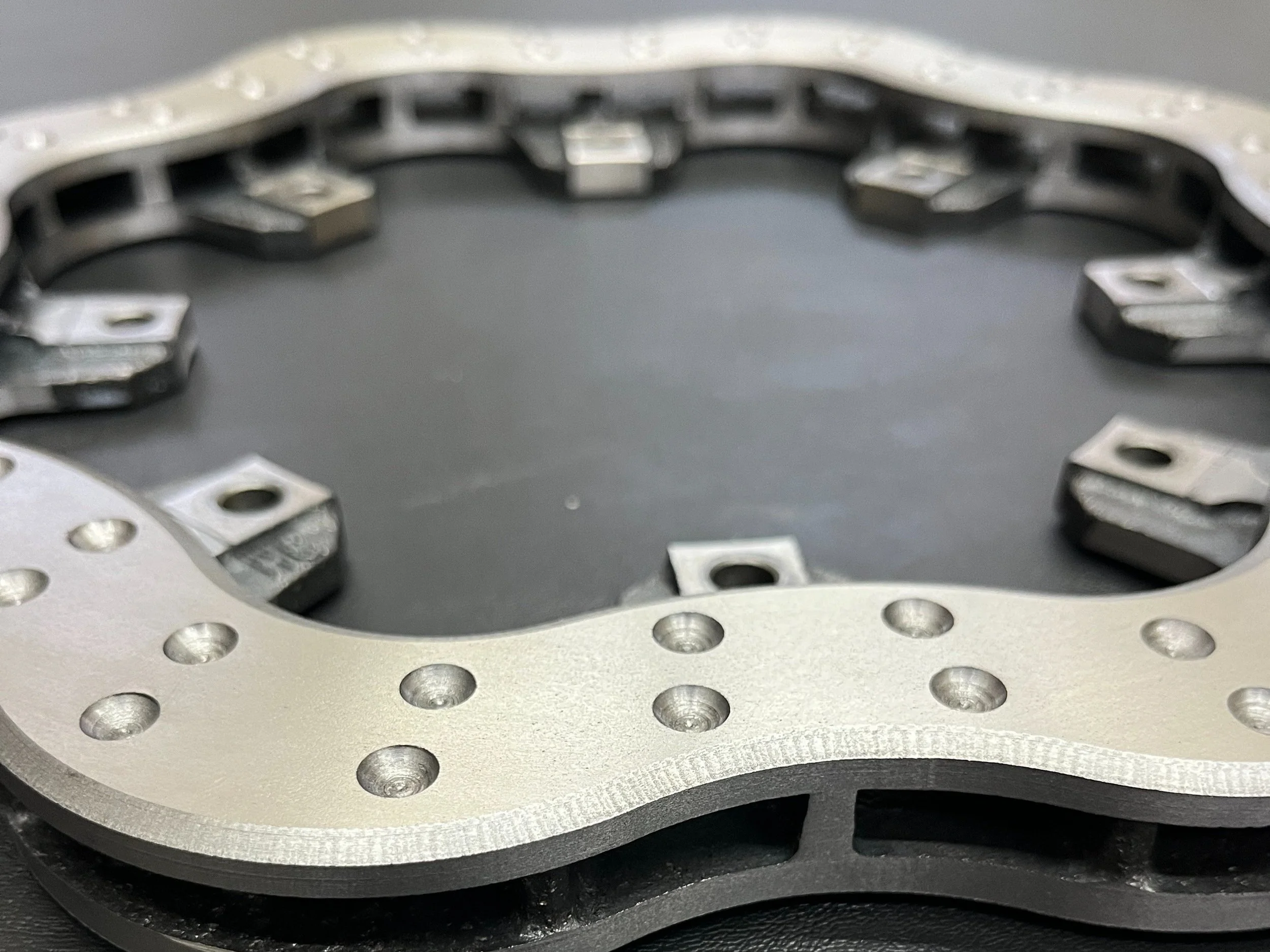The dimples allow for a lighter rotor and also create brake torque. Dimples won’t allow the rotor to crack like cross drilled rotors.